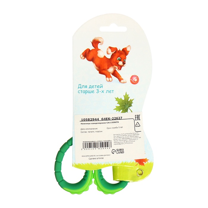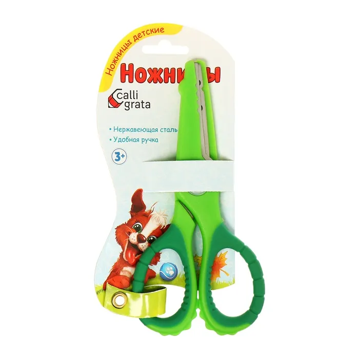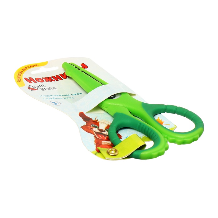 Ножницы 13.5 см (+-0.5 см) прорезиненные ручки, закругленные концы лезвий, зелёный — Характеристики