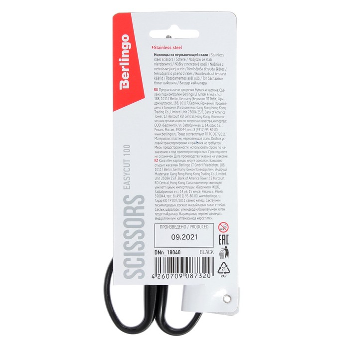 Ножницы 18см Berlingo «Easycut 100», европодвес — Характеристики