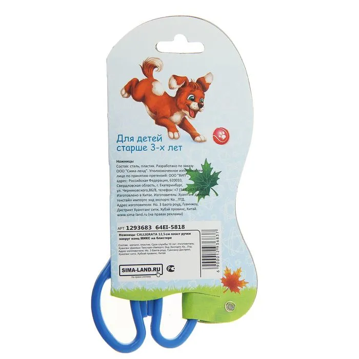 Ножницы детские 12.5 см, закруглённые концы, блистер, МИКС — Характеристики
