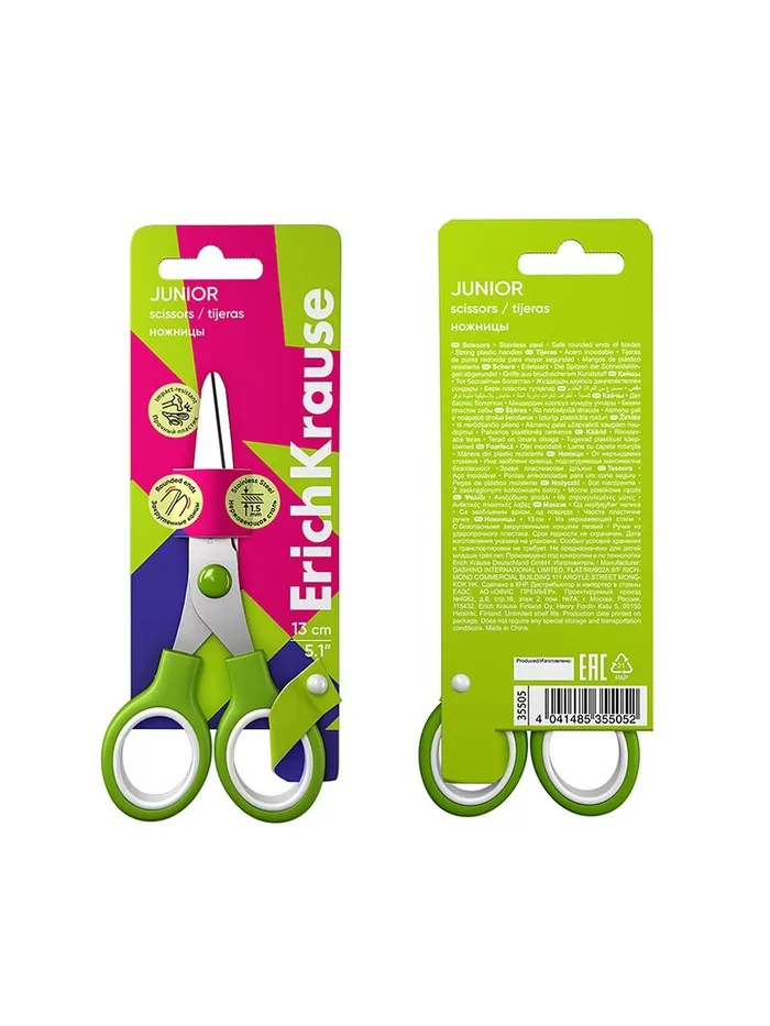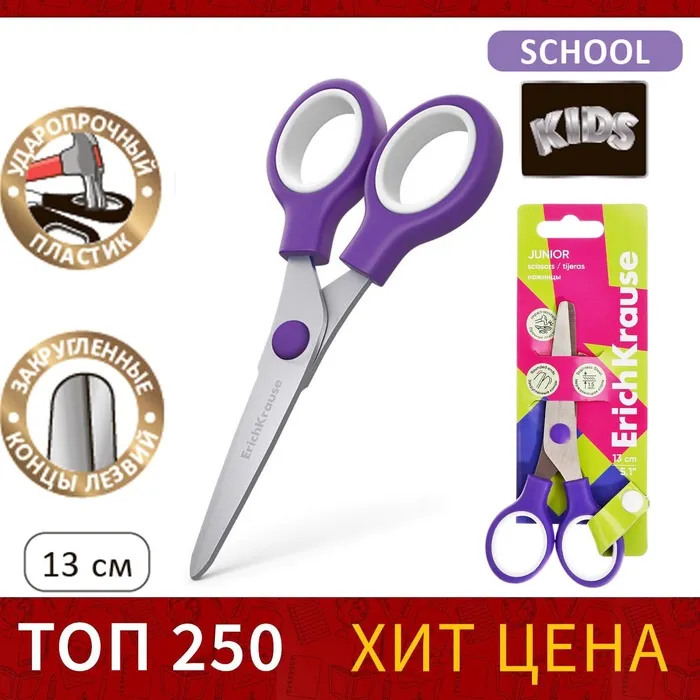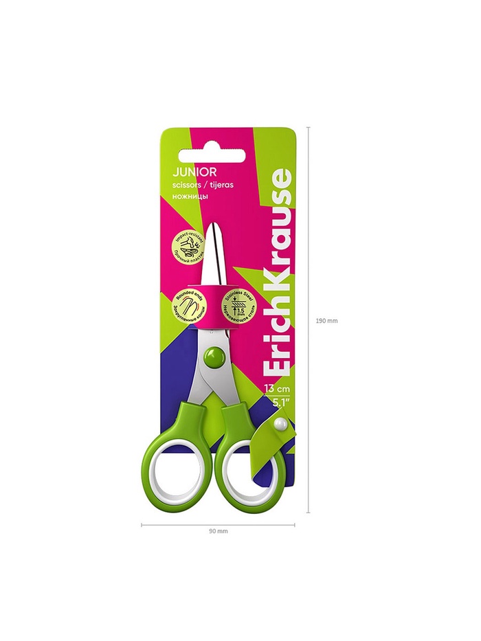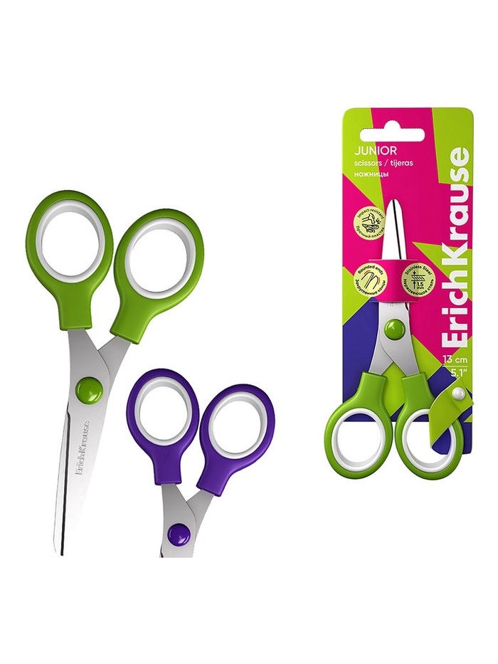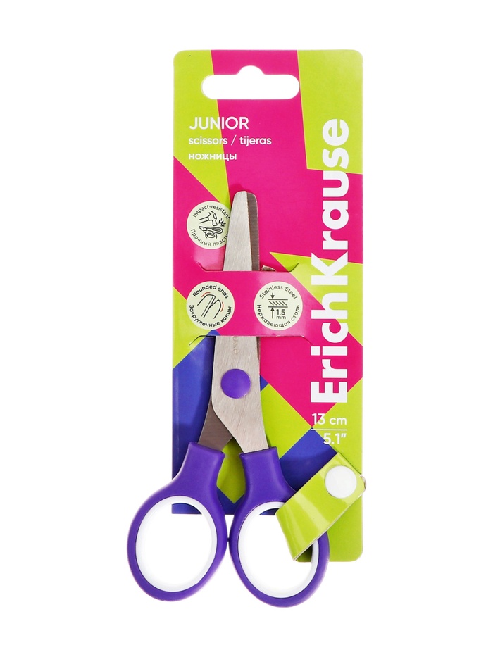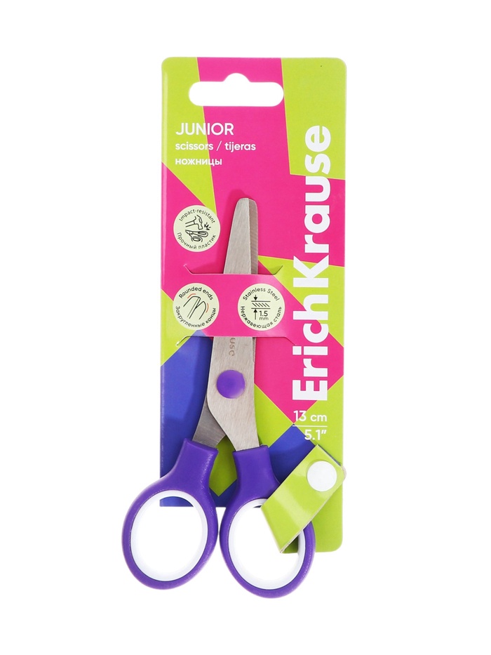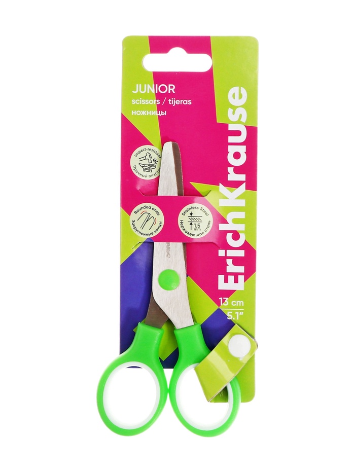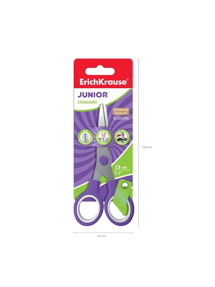 Ножницы детские 13 см, ErichKrause Standard Junior, с закруглёнными концами лезвий, МИКС — Характеристики