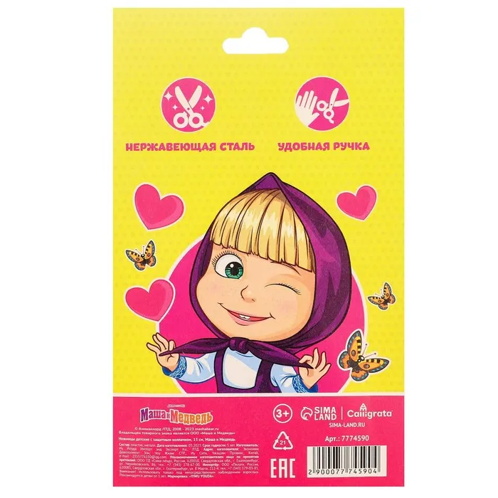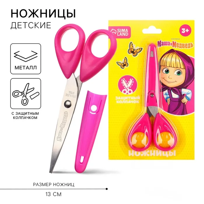 Ножницы детские 13 см, с защитным колпачком, «Маша и медведь» — Характеристики