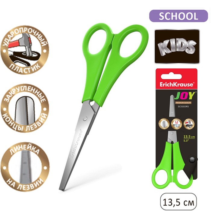 Ножницы детские 13,5 см, ErichKrause Joy, с закруглёнными концами лезвий и линейкой, МИКС — Характеристики
