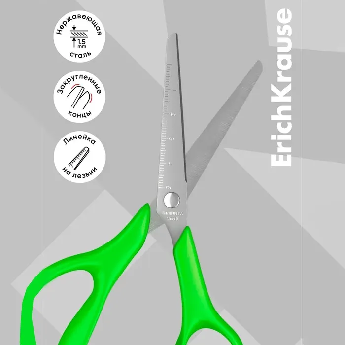 Ножницы с лезвиями из высококачественной нержавеющей стали с безопасными закругленными концами лезвий и линейкой, обеспечивающей точность резки. Не ржавеют. Ручки эргономичной формы из ударопрочного пластика. Товар поставляется в нескольких вариантах цвета/дизайна без возможности выбора.
