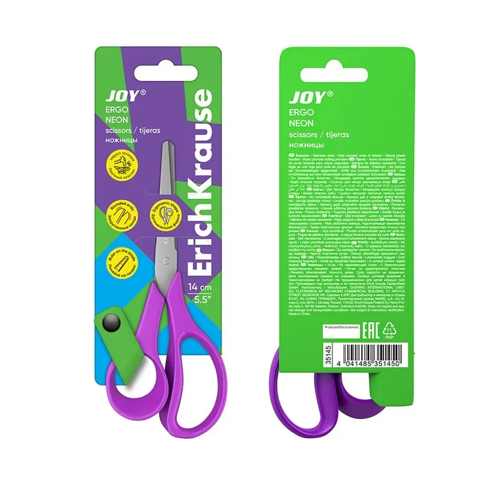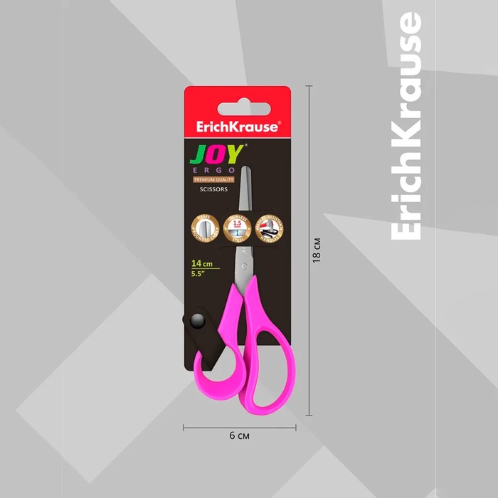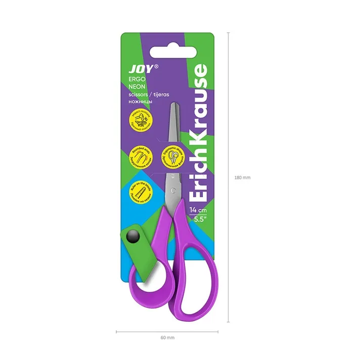 Ножницы детские 14 см, ErichKrause Joy Ergo, с закруглёнными концами лезвий и линейкой, МИКС — Характеристики