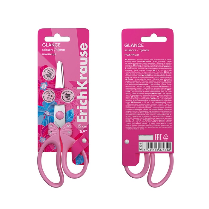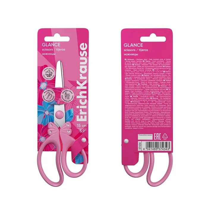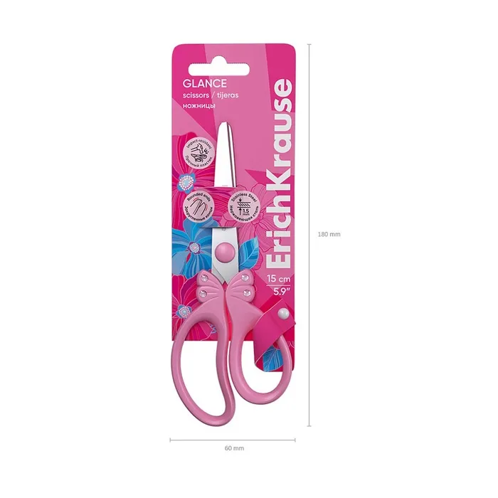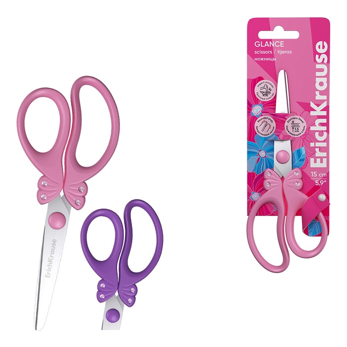 Ножницы детские 15 см, ErichKrause Glance, со стразами, с закруглёнными концами лезвий, МИКС — Характеристики
