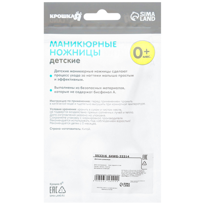 Ножницы детские безопасные Крошка Я, маникюрные, от 0 мес., МИКС — Характеристики