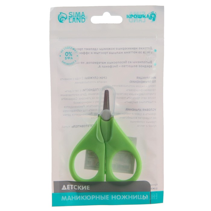 Ножницы детские безопасные, маникюрные, с чехлом, от 0 мес., зелёные — Характеристики
