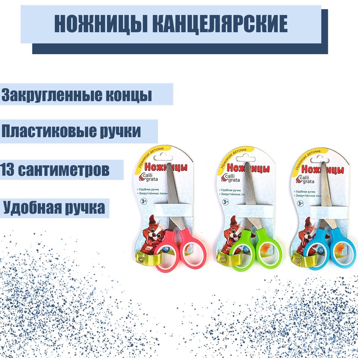 Ножницы с лезвиями из высококачественной нержавеющей стали с безопасными закругленными концами лезвий и линейкой, обеспечивающей точность резки. Не ржавеют. Ручки классической формы изготовлены из ударопрочного пластика. Модель предусмотрена для левшей. Товар поставляется в нескольких вариантах цвета/дизайна без возможности выбора.