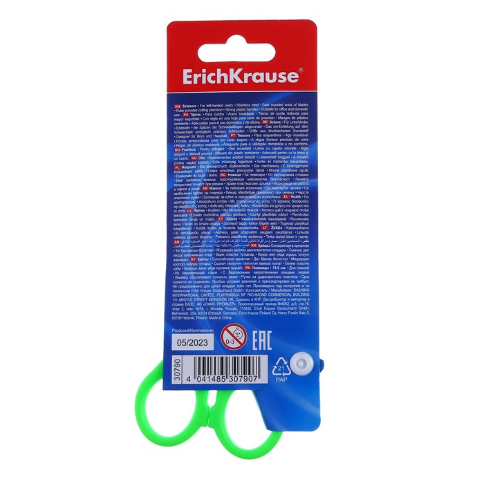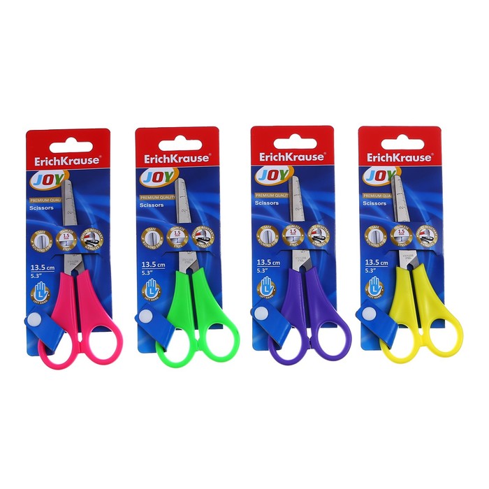 Ножницы детские для левшей 13,5 см, ErichKrause Joy Left Hand, с закруглёнными концами лезвий и линейкой, МИКС — Характеристики