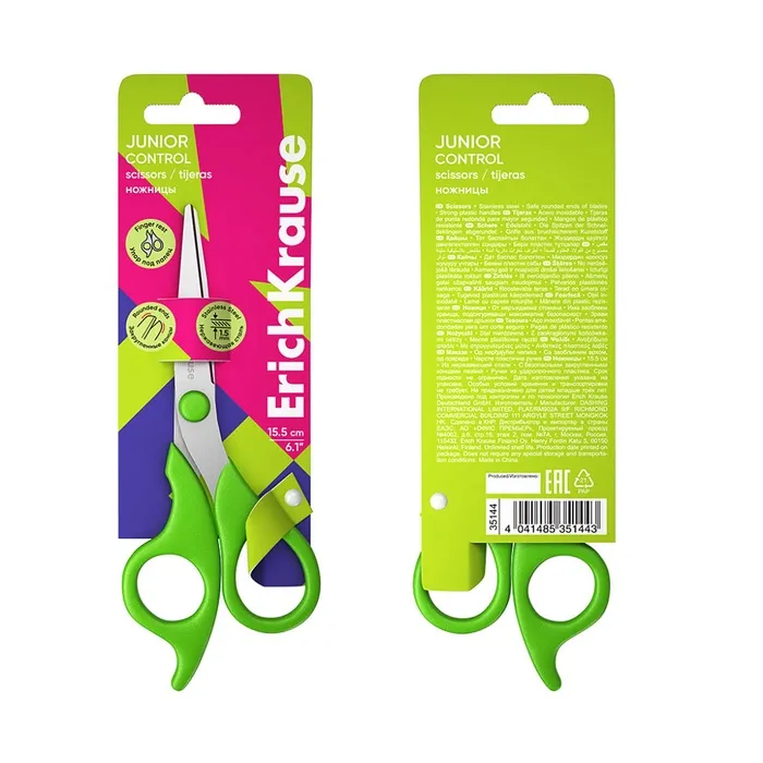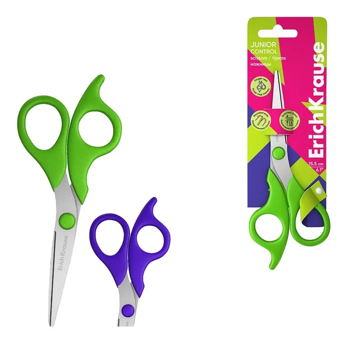 Ножницы детские ErichKrause Control Junior, 15.5 см, с закруглёнными концами лезвий, ударопрочный пластик, МИКС — Характеристики