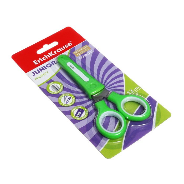 Ножницы детские ErichKrause Junior Protect, 13 см, с пластиковым чехлом и именным стикером, в блистере, МИКС — Характеристики
