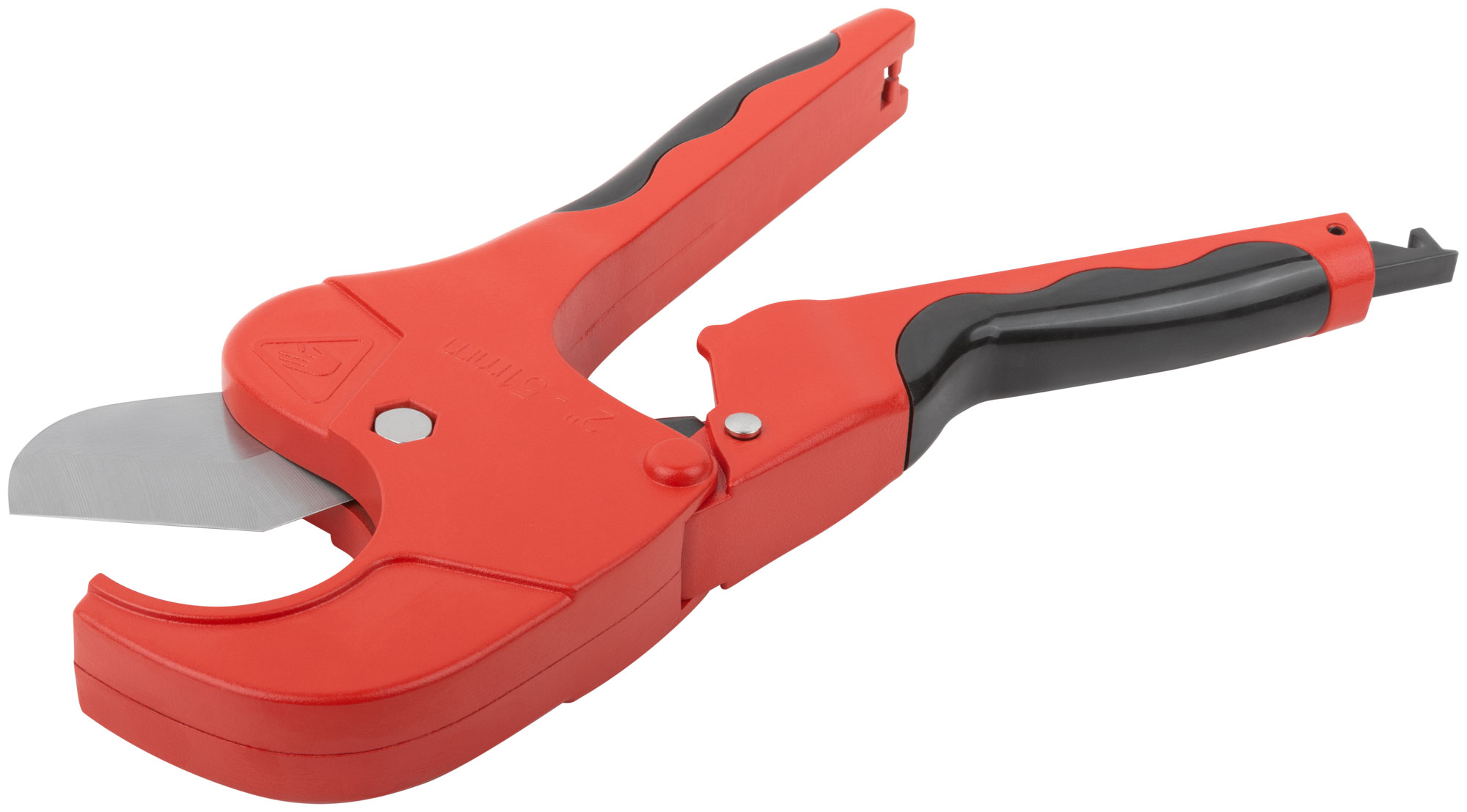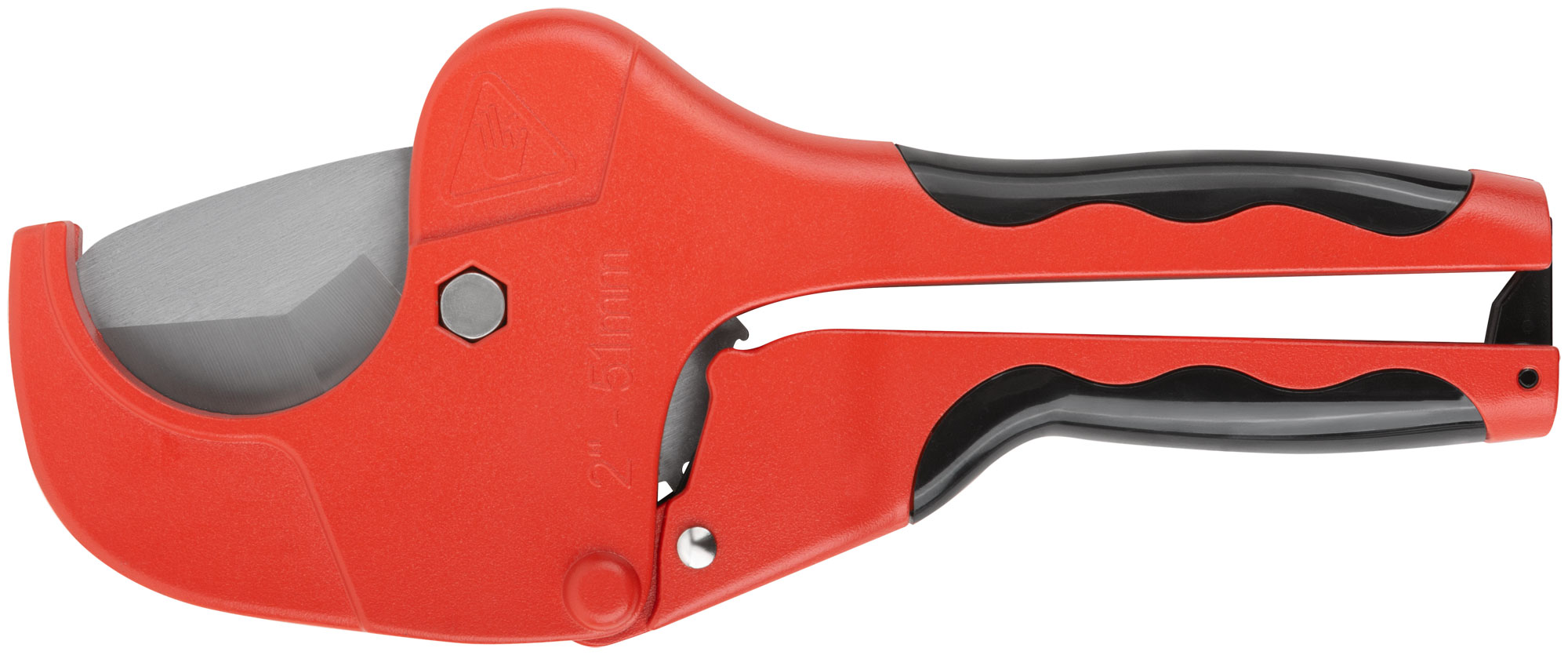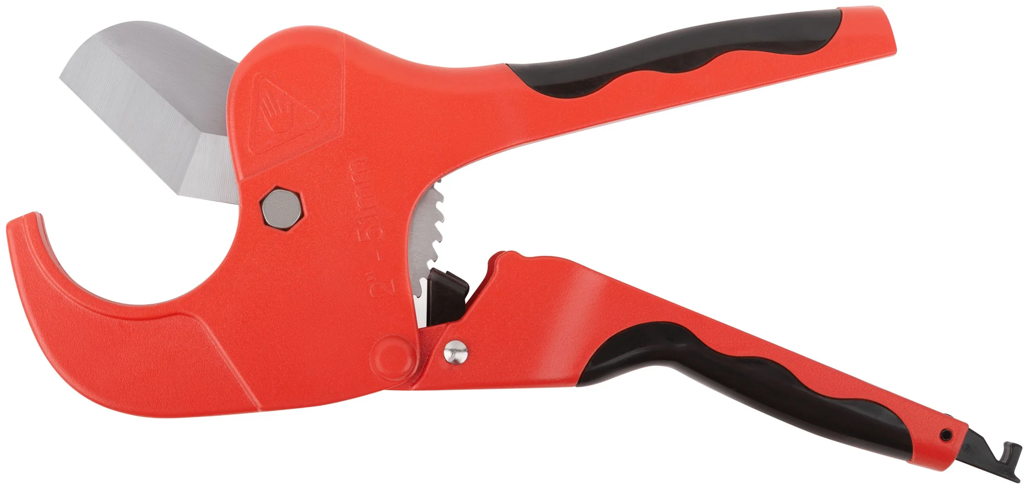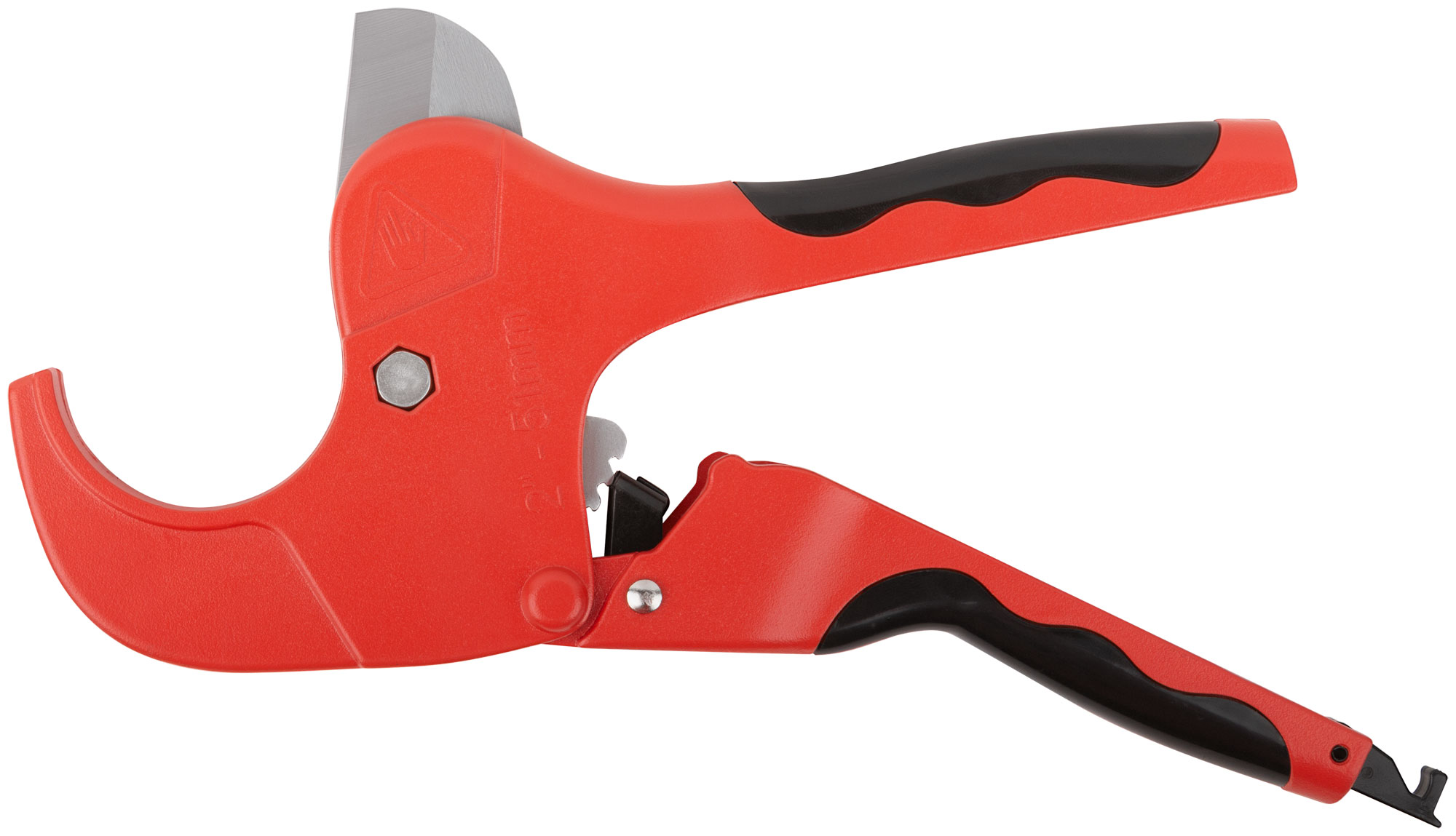 Конструкция ножниц включает стальное лезвие улучшенной формы, которое предотвращает заминание краев труб, что особенно важно для сохранения герметичности соединений. Корпус изготовлен из прочного алюминиевого сплава, что обеспечивает долговечность и надежность инструмента.