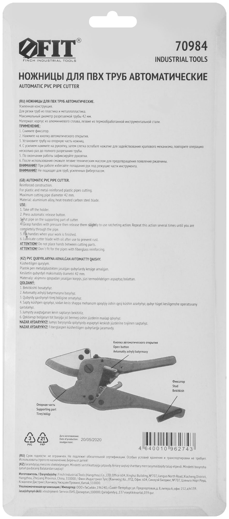 Выберите ножницы FIT 70984, чтобы обеспечить себе надежный и эффективный инструмент для работы с трубами.