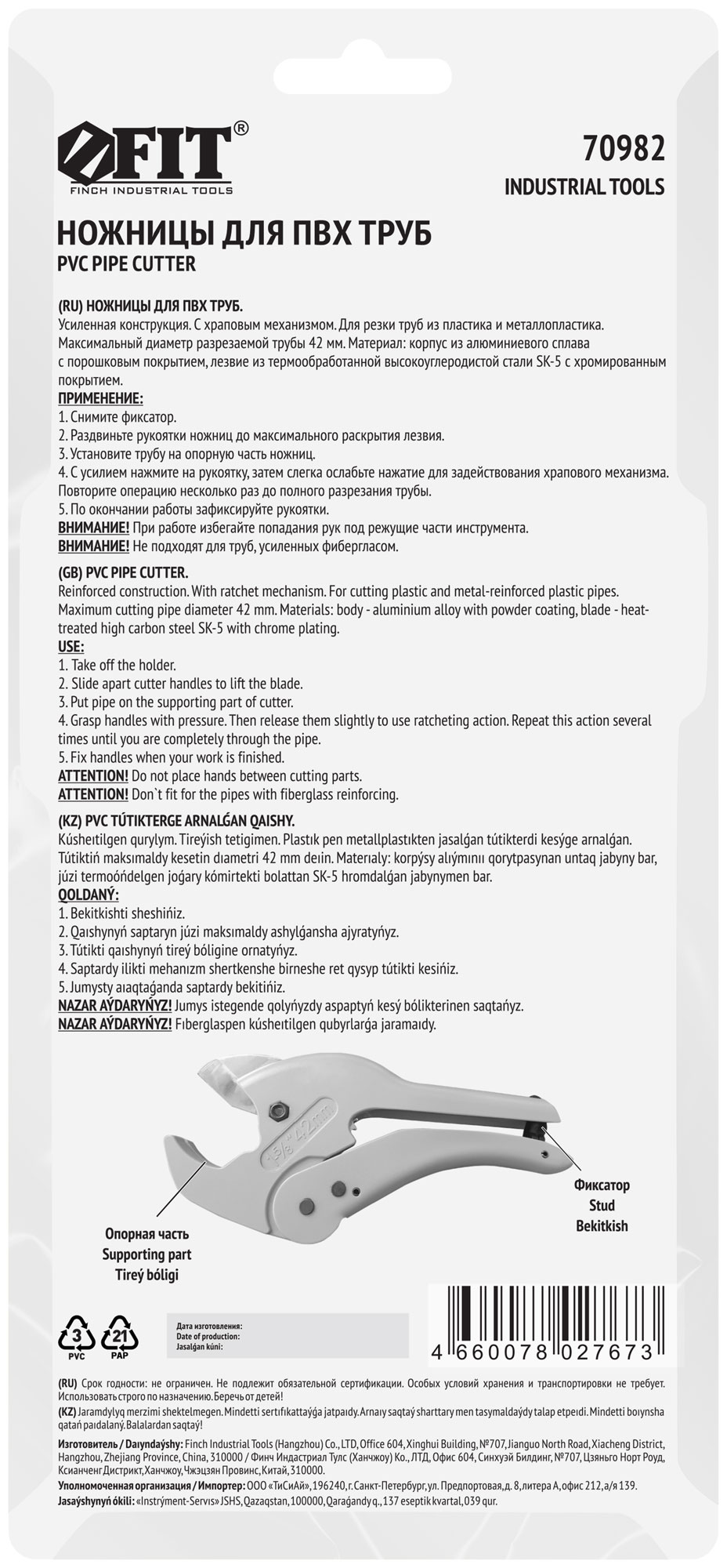 Выберите ножницы FIT 70982, чтобы обеспечить точность и надежность при монтаже трубопроводных систем.