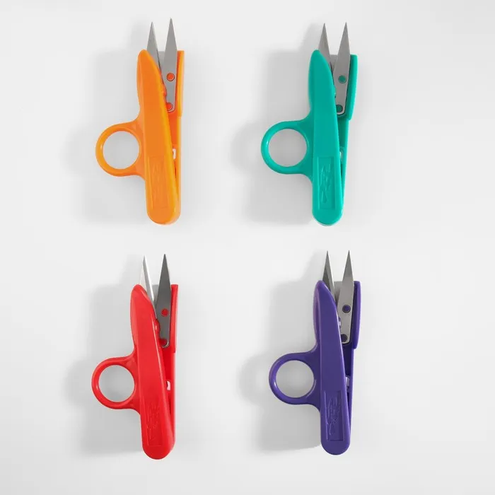 Ножницы для обрезки ниток прочные, имеют остро заточенные лезвия и легки в обращении. Режущие кромки плотно прилегают друг к другу, а благодаря ручке их удобно держать при работе. Приобретите это маленькое приспособление, и оно станет незаменимым помощником при шитье и не только.