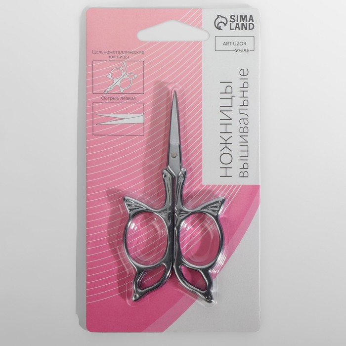 Ножницы для рукоделия «Бабочка», скошенное лезвие, 3.5", 9 см, цвет серебряный — Характеристики