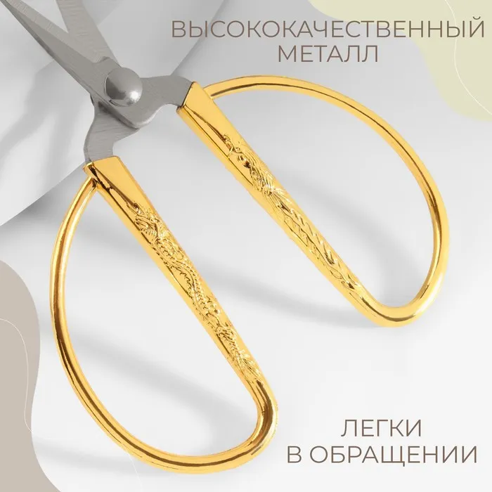 Ножницы для рукоделия, скошенное лезвие, 3.5", 8.5 см, цвет золотой — Характеристики
