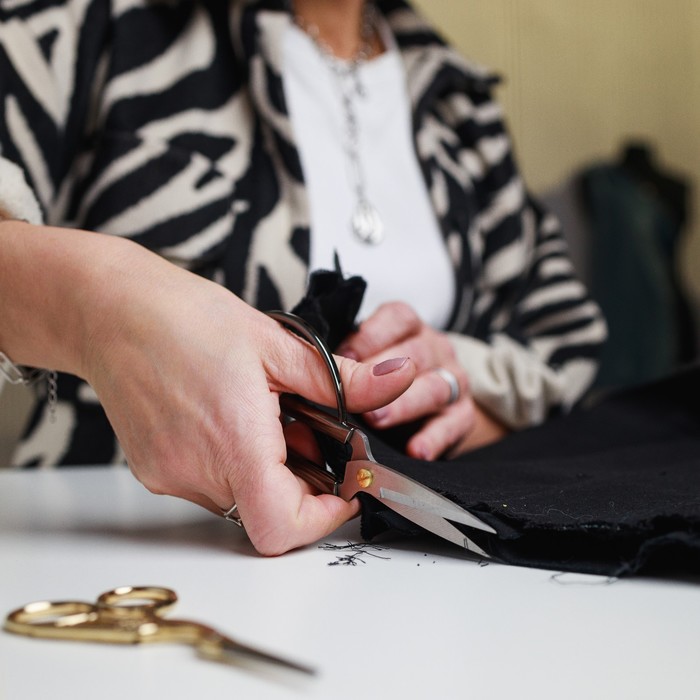 Стильные металлические ножницы с небольшими лезвиями помогут аккуратно обрезать нитки, края изделия и другие мелкие детали.