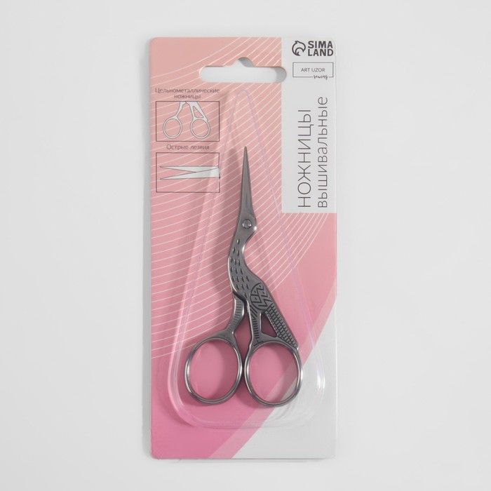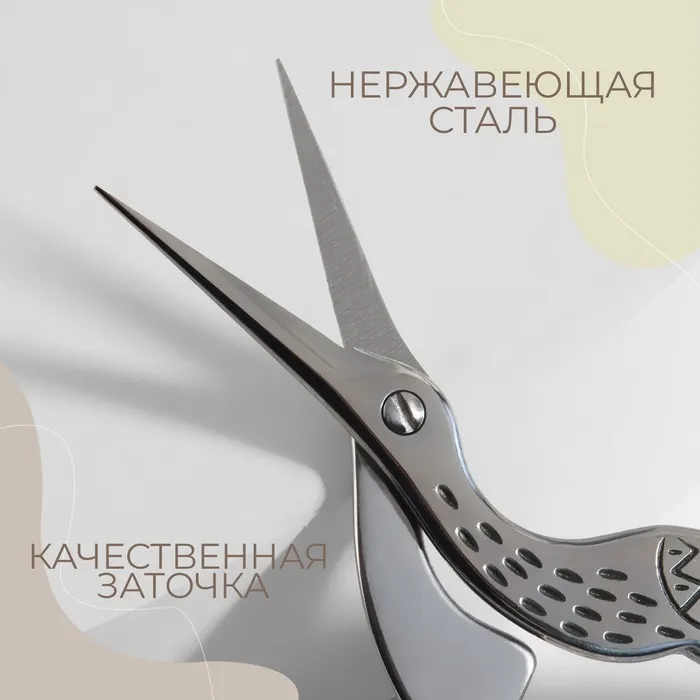 Ножницы для рукоделия «Цапельки», скошенное лезвие, 3.5", 9 см, цвет серебряный — Характеристики