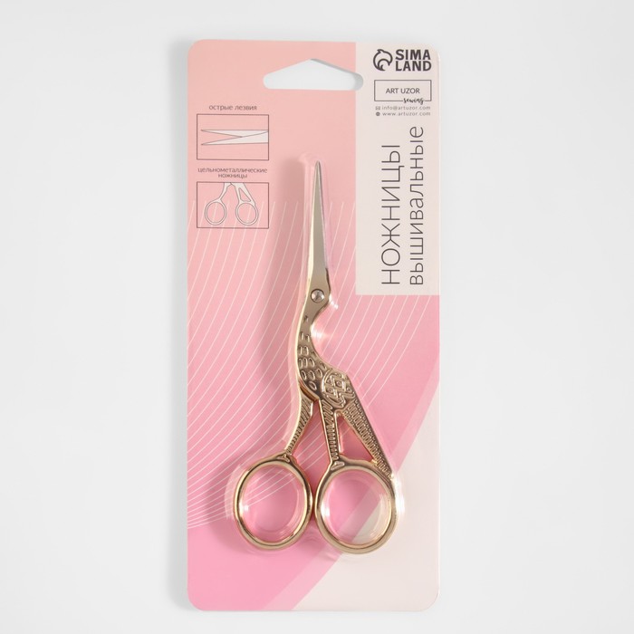 Ножницы для рукоделия «Цапельки», скошенное лезвие, 4.5", 11.4 см, цвет золотой — Характеристики