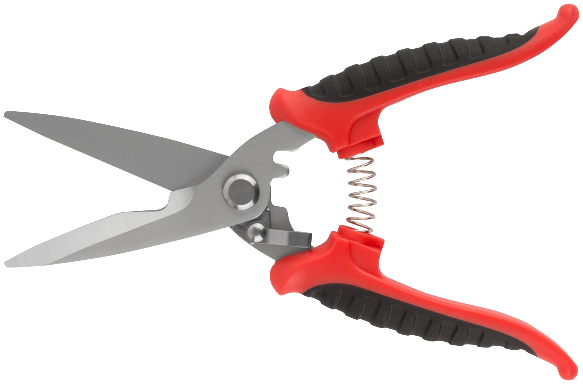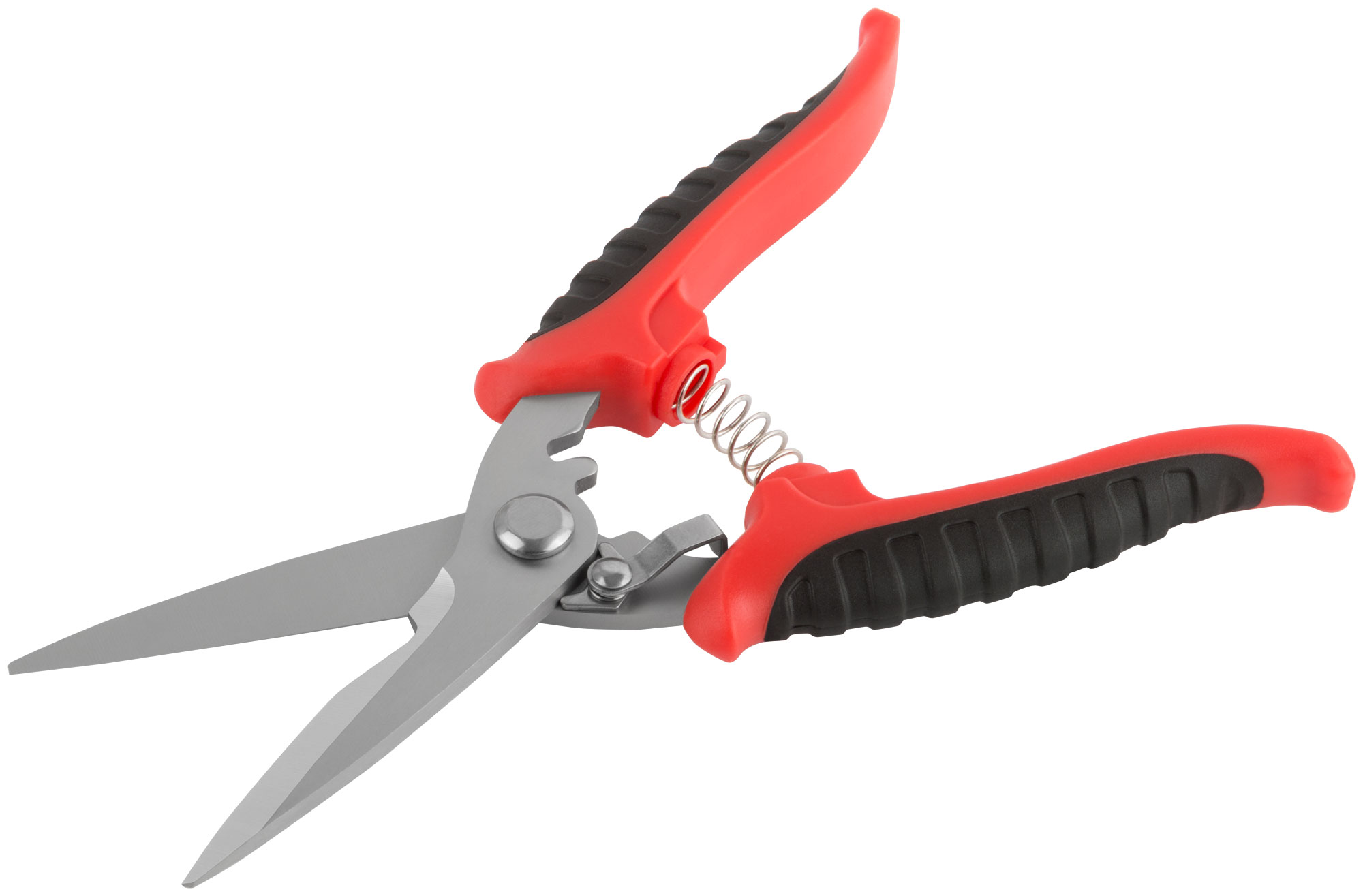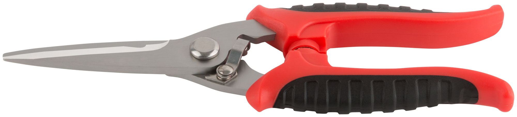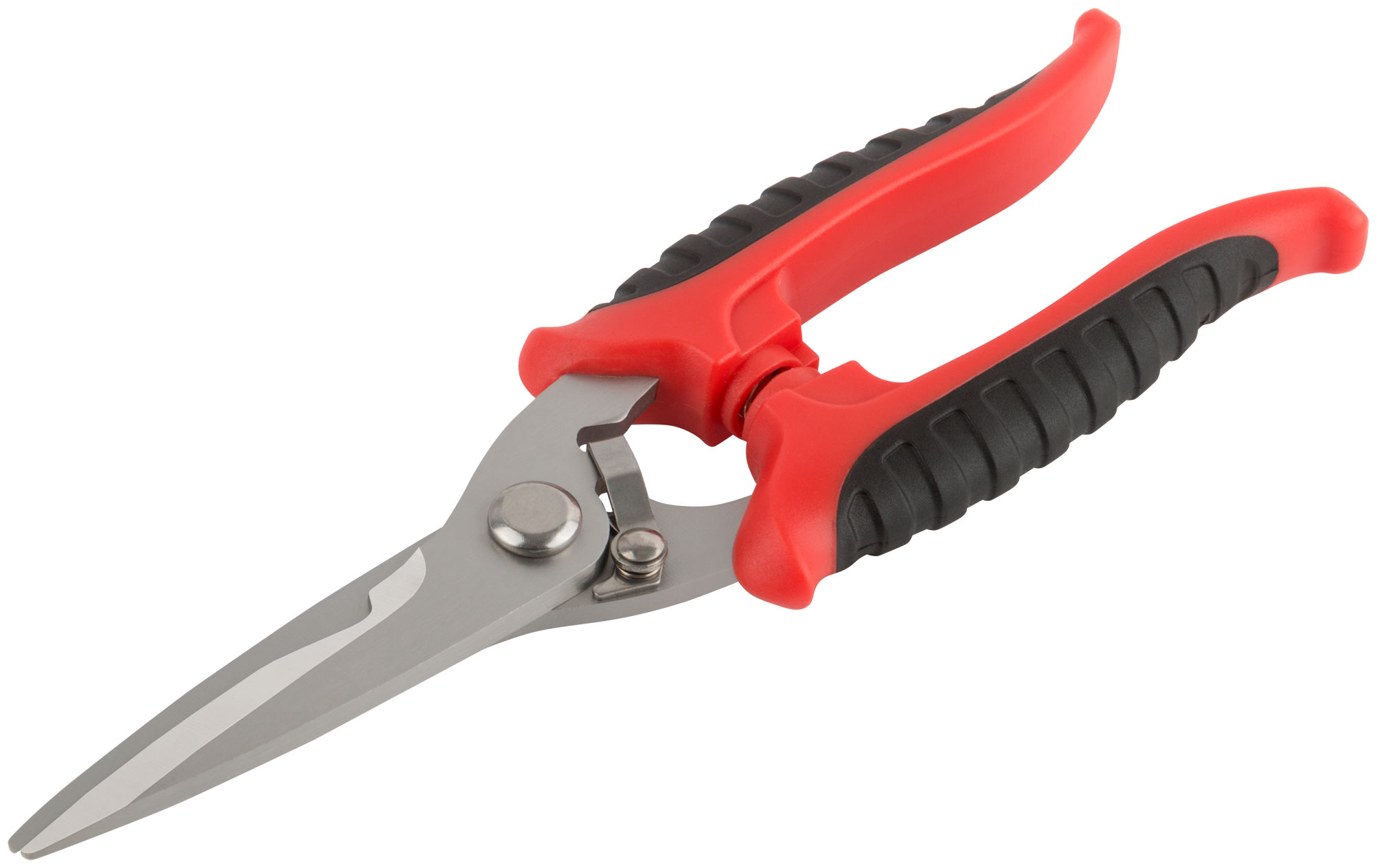 Эти ножницы оснащены специальными зубцами, предотвращающими скольжение при резке, что увеличивает точность и безопасность работы. Острое лезвие позволяет легко справляться с материалами различной толщины и плотности.