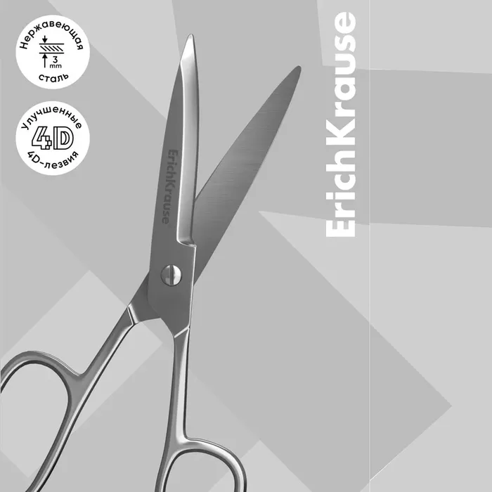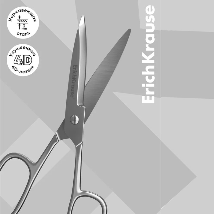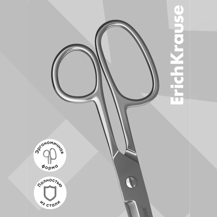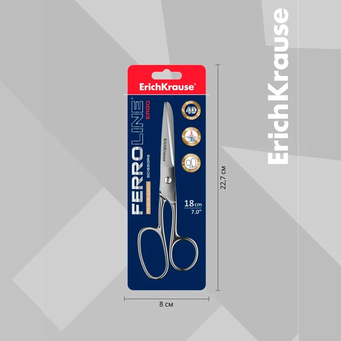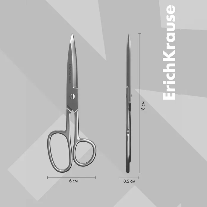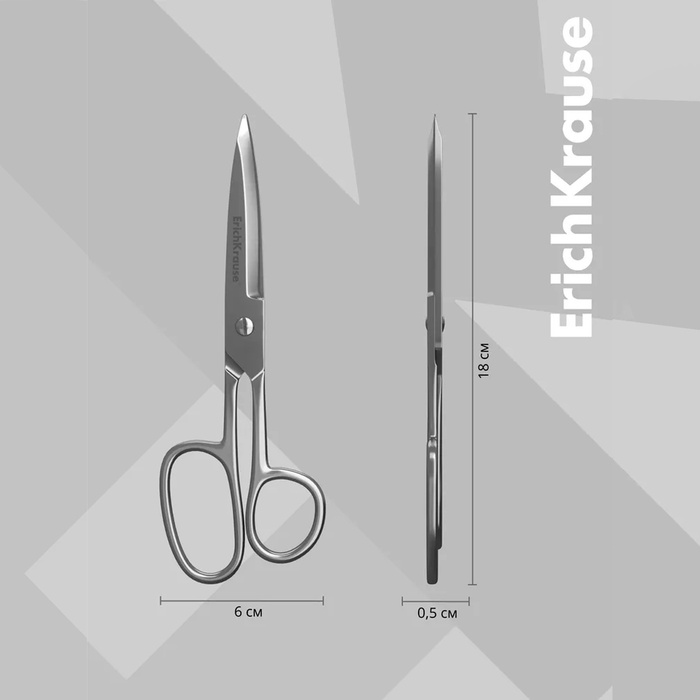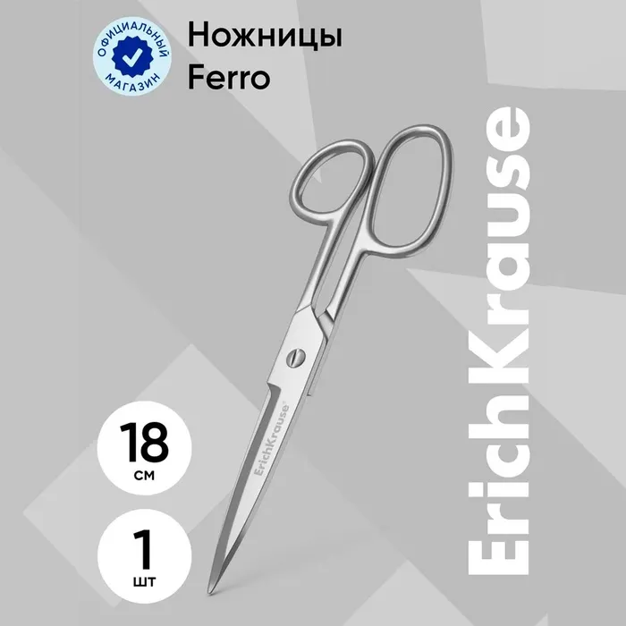 Ножницы ErichKrause Ferro, 18 см, лезвия увеличенной толщины, цельнометаллические, блистер — Характеристики