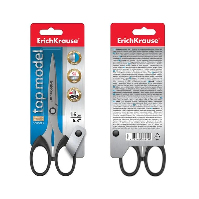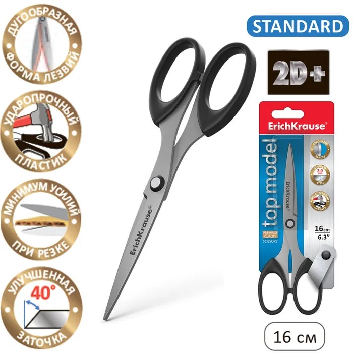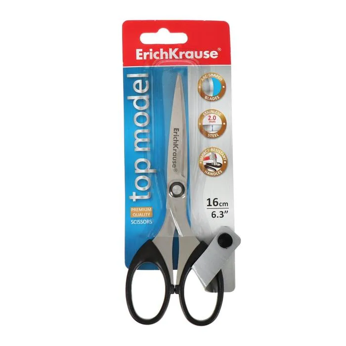 Ножницы ErichKrause Top Model, 16 см, с увеличенной толщиной лезвий из нержавеющей стали, чёрные — Характеристики