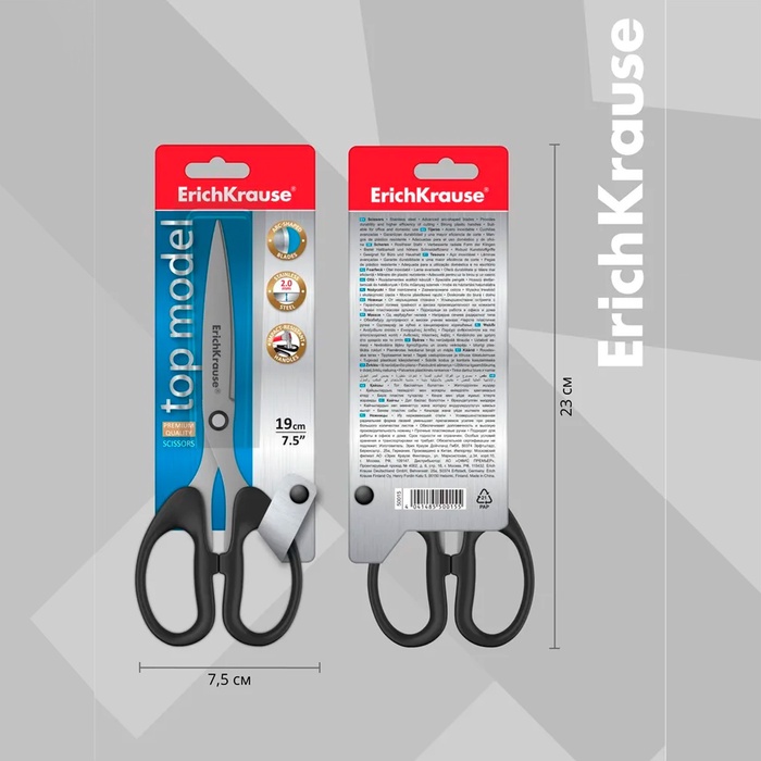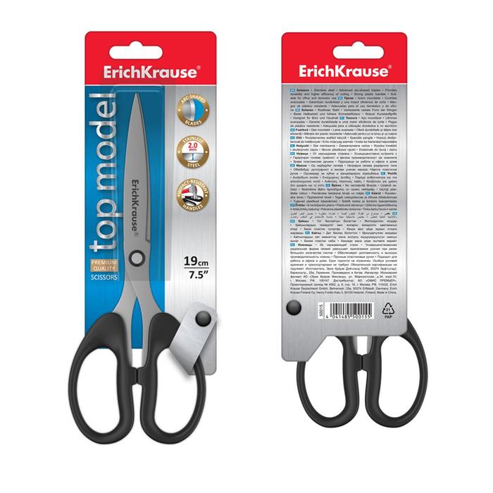 Ножницы ErichKrause Top Model, 19 см, чёрные — Характеристики