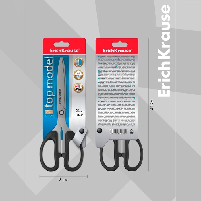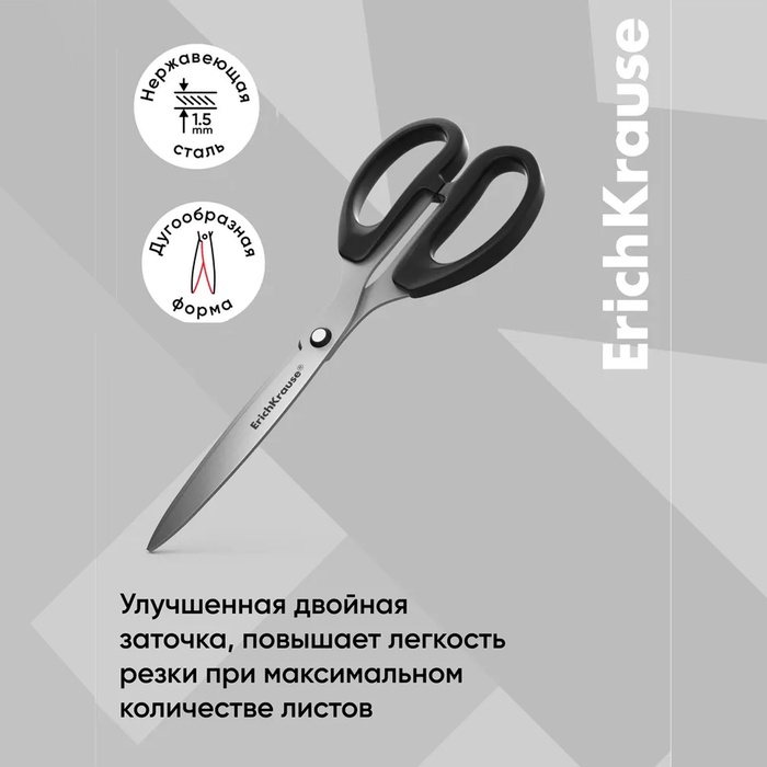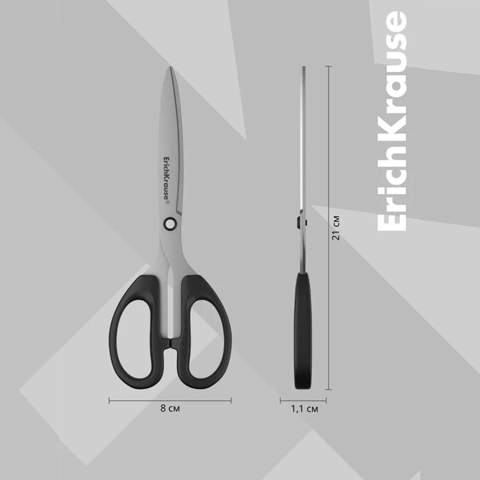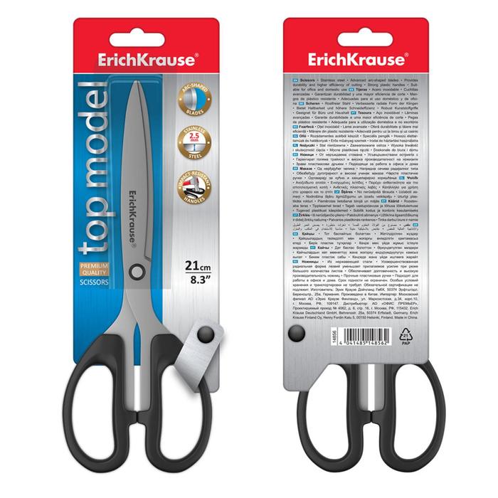 Ножницы ErichKrause Top Model, 21 см, блистер, увеличенная толщина лезвий, чёрные — Характеристики