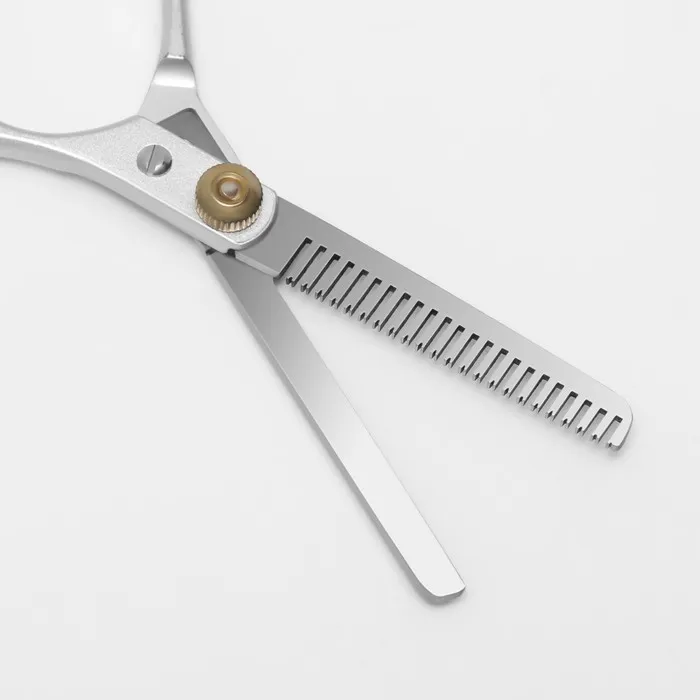 Филировочные ножницы давно стали незаменимыми помощниками парикмахеров. Острые лезвия в одно движение отсекут кончики и проредят объёмные локоны. Упор на кольцах сделает процедуру удобнее: рука мастера не устанет, и он сможет контролировать силу нажатия до миллиметра.