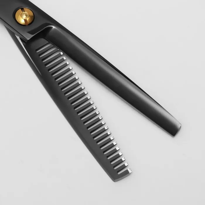 Филировочные ножницы давно стали незаменимыми помощниками парикмахеров. Острые лезвия в одно движение отсекут кончики и проредят объёмные локоны. Упор на кольцах сделает процедуру удобнее: рука мастера не устанет, и он сможет контролировать силу нажатия до миллиметра.