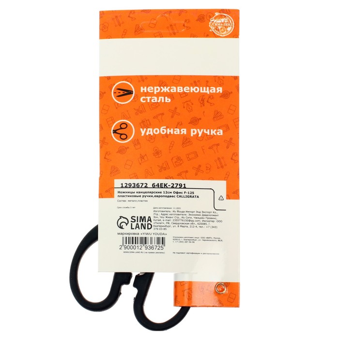 Ножницы канцелярские, 12 см, «Офис», пластиковые ручки, европодвес — Характеристики