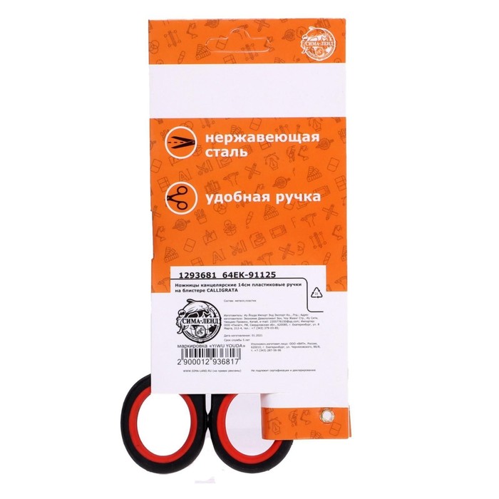 Ножницы канцелярские 14 см, пластиковые ручки, блистер — Характеристики