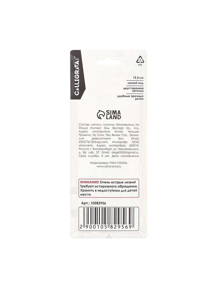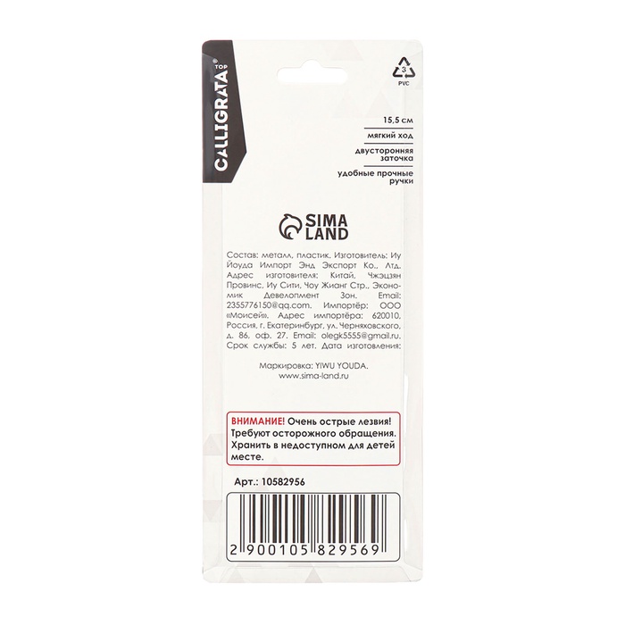 Ножницы канцелярские 15.5 см, Calligrata TOP, Офис, пластиковые ручки, европодвес — Характеристики