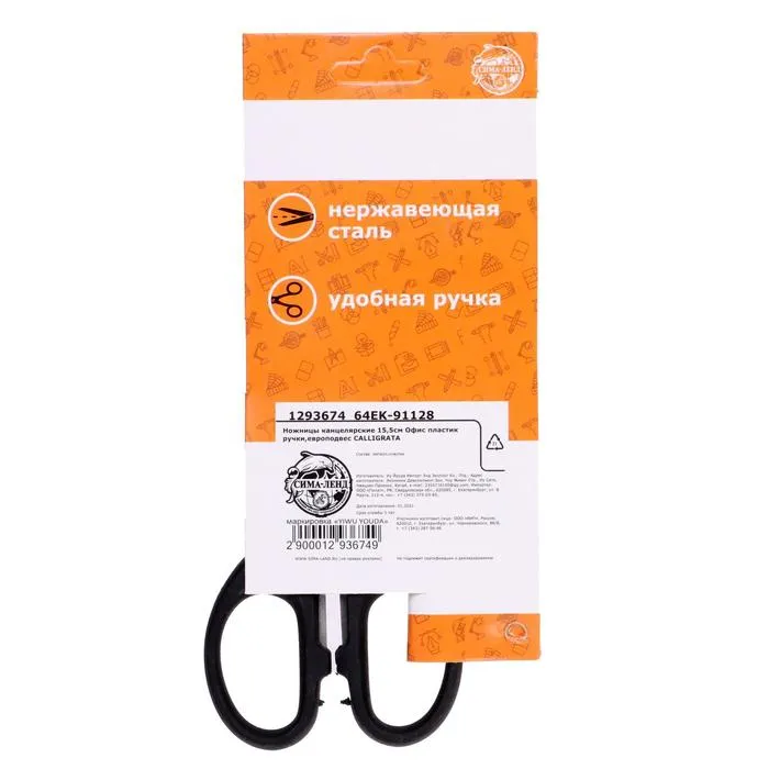 Ножницы канцелярские 15.5 см, «Офис», пластиковые ручки, европодвес — Характеристики