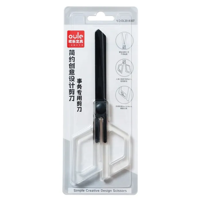 Ножницы канцелярские 17 см, черное лезвие, ручки пластиковые, прозрачные — Характеристики