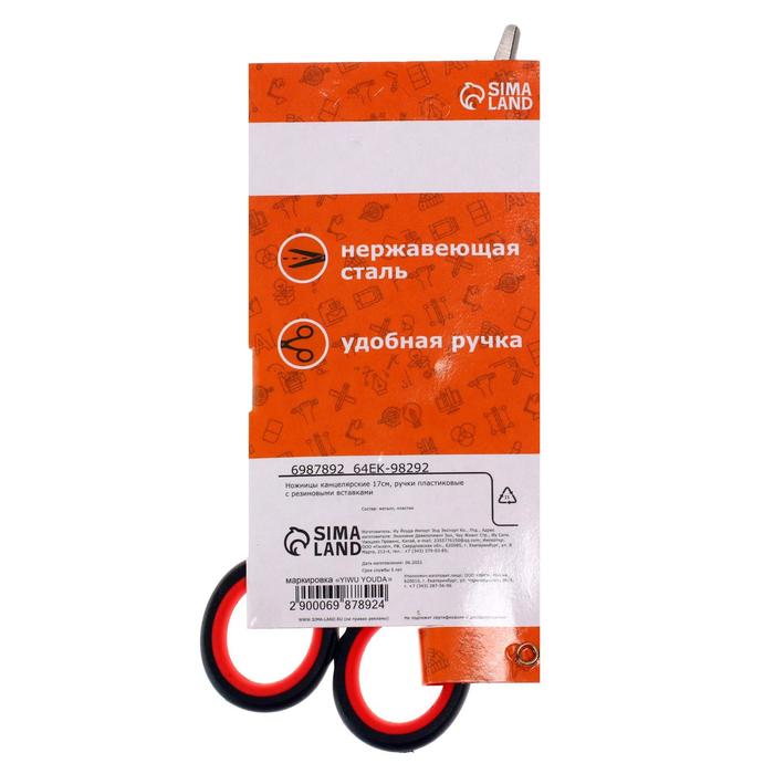Ножницы канцелярские 17 см, ручки пластиковые с резиновыми вставками — Характеристики