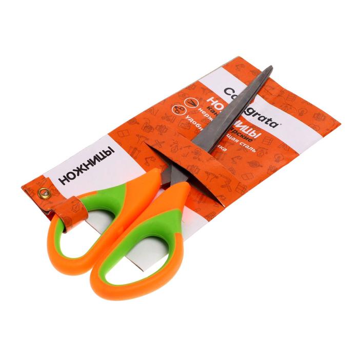 Изготовлены из нержавеющей стали.Ручки - пластик с резиновыми вставками анатомической формы предотвращают скольжение пальцев.Имеют острые лезвия, что снижает нагрузку на руку.Благодаря продуманной форме ручек они удобны как для рукоделия, так и для творчества.Незаменимые универсальные ножницы для офиса и для дома.Внимание! Могут встречаться заломы на подложке, при сгибании плотного картона с нанесением, такие заломы неизбежность транспортировки