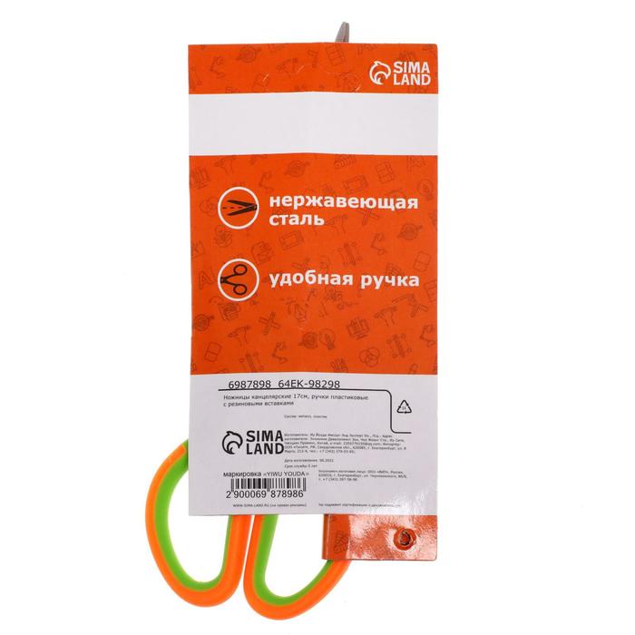 Ножницы канцелярские 17 см, ручки пластиковые с резиновыми вставками, МИКС — Характеристики