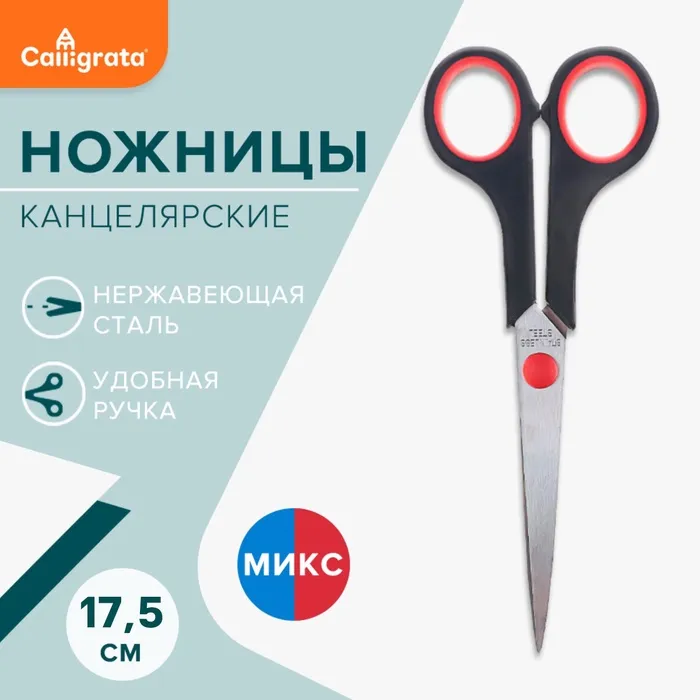 Ножницы канцелярские 17.5 см пластиковые ручки, в картонной коробке — Характеристики