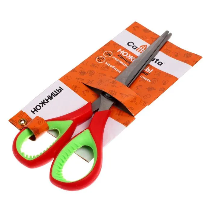 Изготовлены из нержавеющей стали.Ручки - пластик с резиновыми вставками анатомической формы предотвращают скольжение пальцев.Имеют острые лезвия, что снижает нагрузку на руку.Благодаря продуманной форме ручек они удобны как для рукоделия, так и для творчества.Незаменимые универсальные ножницы для офиса и для дома.Внимание! Могут встречаться заломы на подложке, при сгибании плотного картона с нанесением, такие заломы неизбежность транспортировки