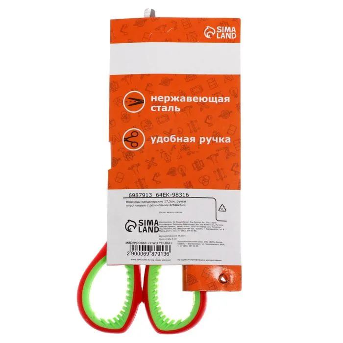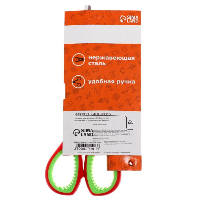 Ножницы канцелярские 17.5 см, ручки пластиковые с резиновыми вставками, МИКС — Характеристики