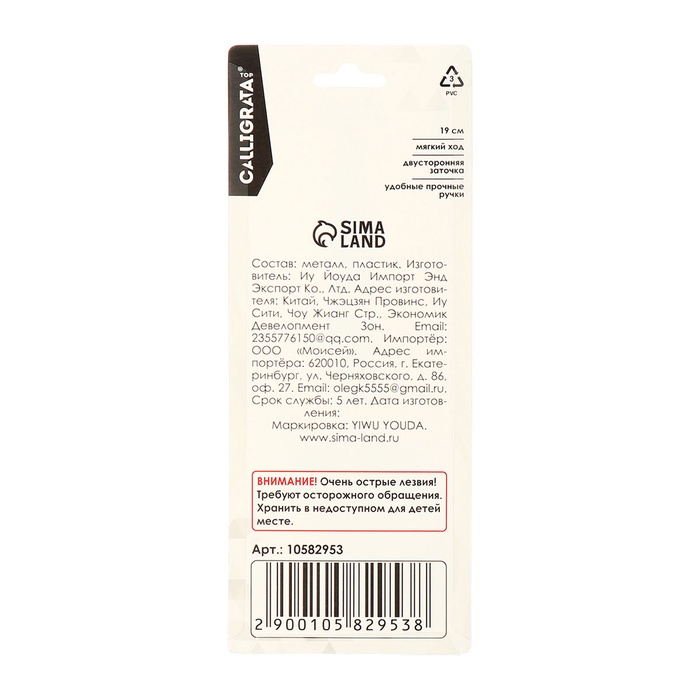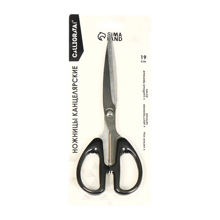 Ножницы канцелярские 19.0 см Офис пластиковые ручки, европодвес — Характеристики