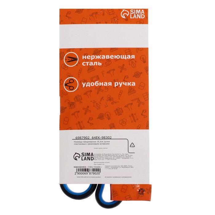 Ножницы канцелярские 19.3 см, ручки пластиковые с резиновыми вставками, МИКС — Характеристики
