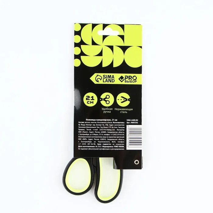 Ножницы канцелярские 21 см, PROвыбор «Черный неон» — Характеристики