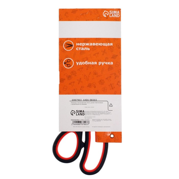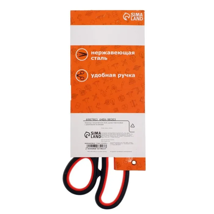 Ножницы канцелярские 21 см, ручки пластиковые с резиновыми вставками — Характеристики