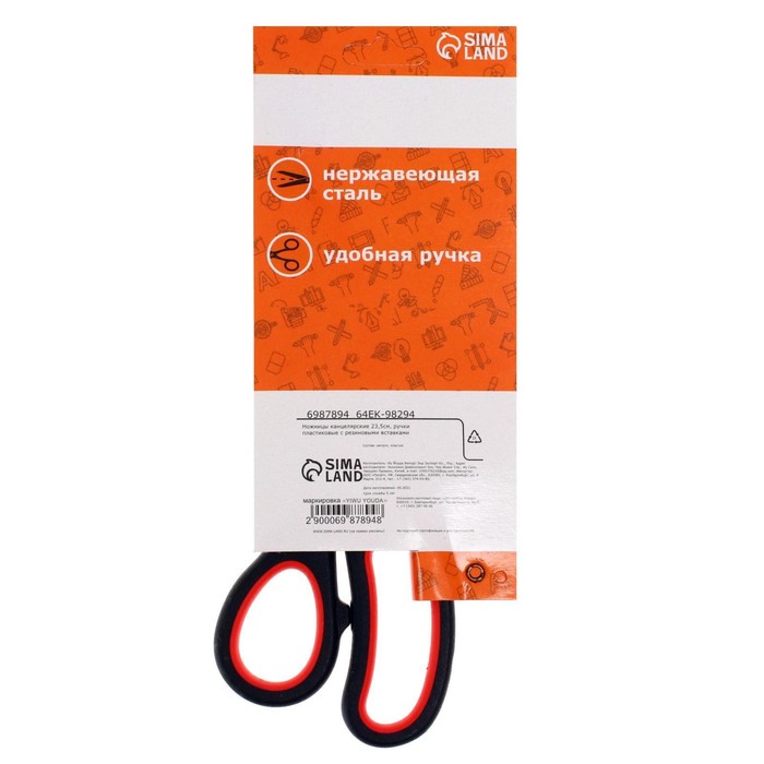 Ножницы канцелярские 23.5 см, ручки пластиковые с резиновыми вставками — Характеристики
