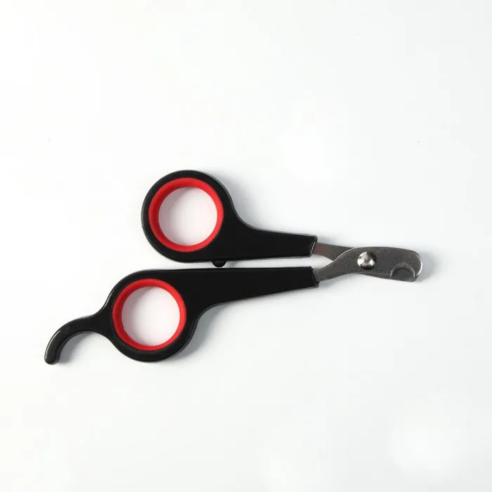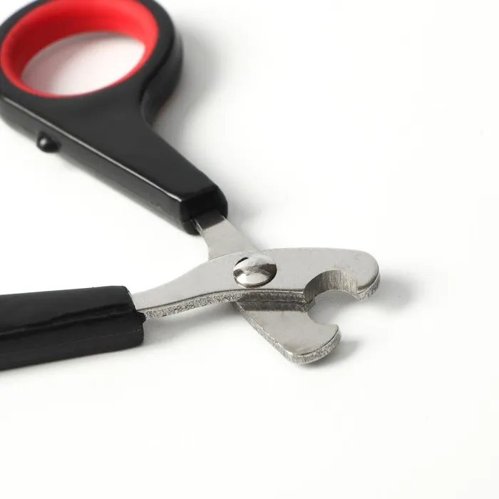 Ножницы-когтерезы с упором для пальца, отверстие 6 мм, чёрные с красным