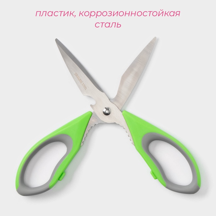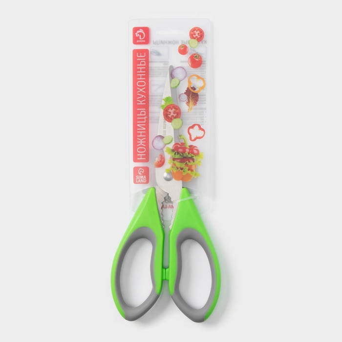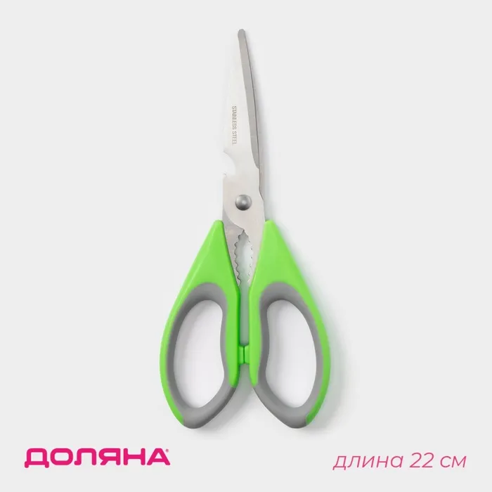 Ножницы кухонные Доляна «Гари», 22 см, цвет зелёный — Характеристики