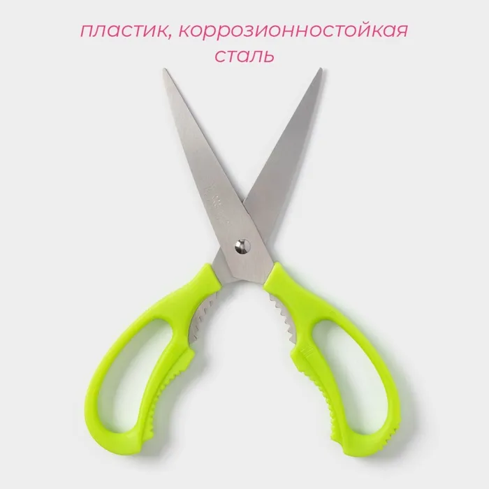 Ножницы кухонные Доляна «Саймон», 23 см, зелёные — Характеристики